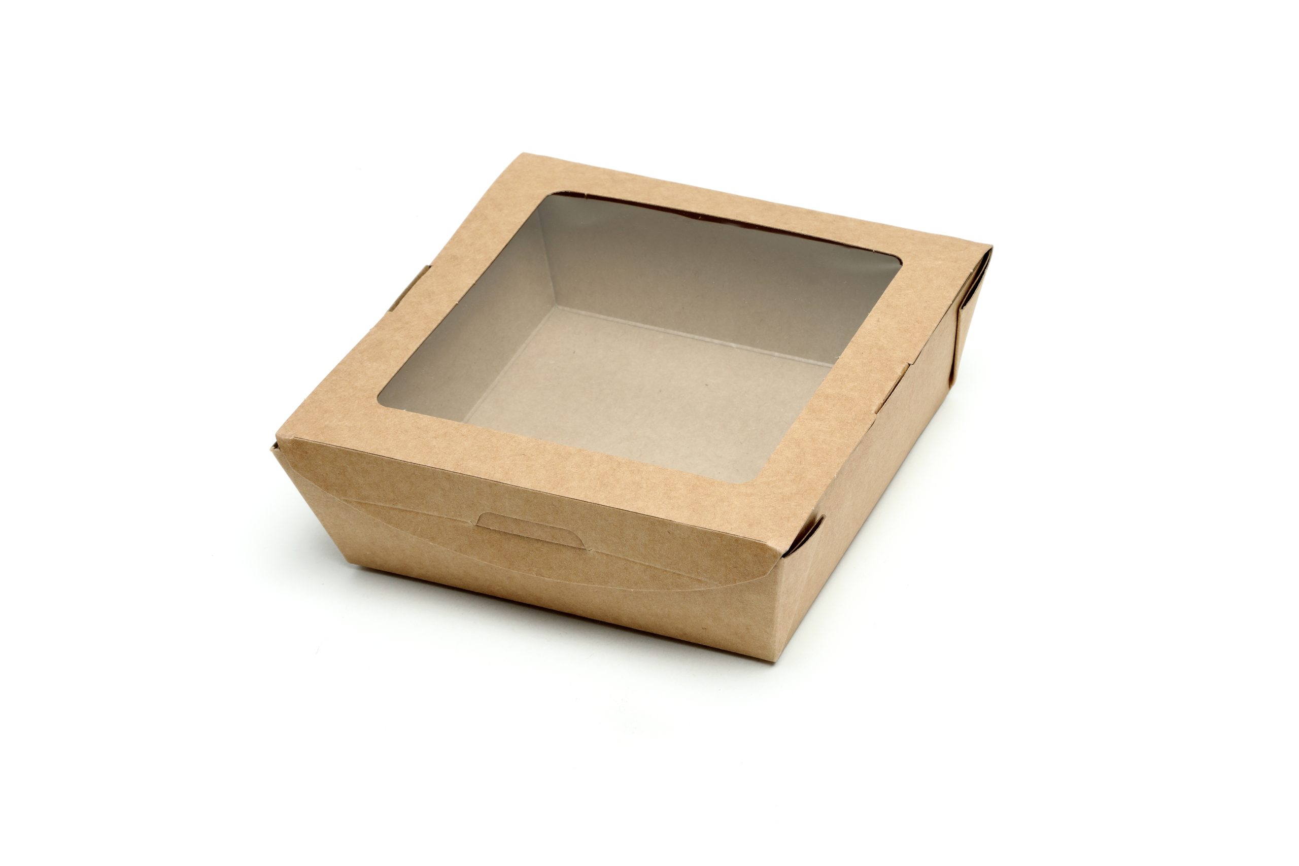 Brown Kraft Leak-proof containers with PLA window so compostable and biodegradable and in addition is manufactured from forestry council approved sustainable material.